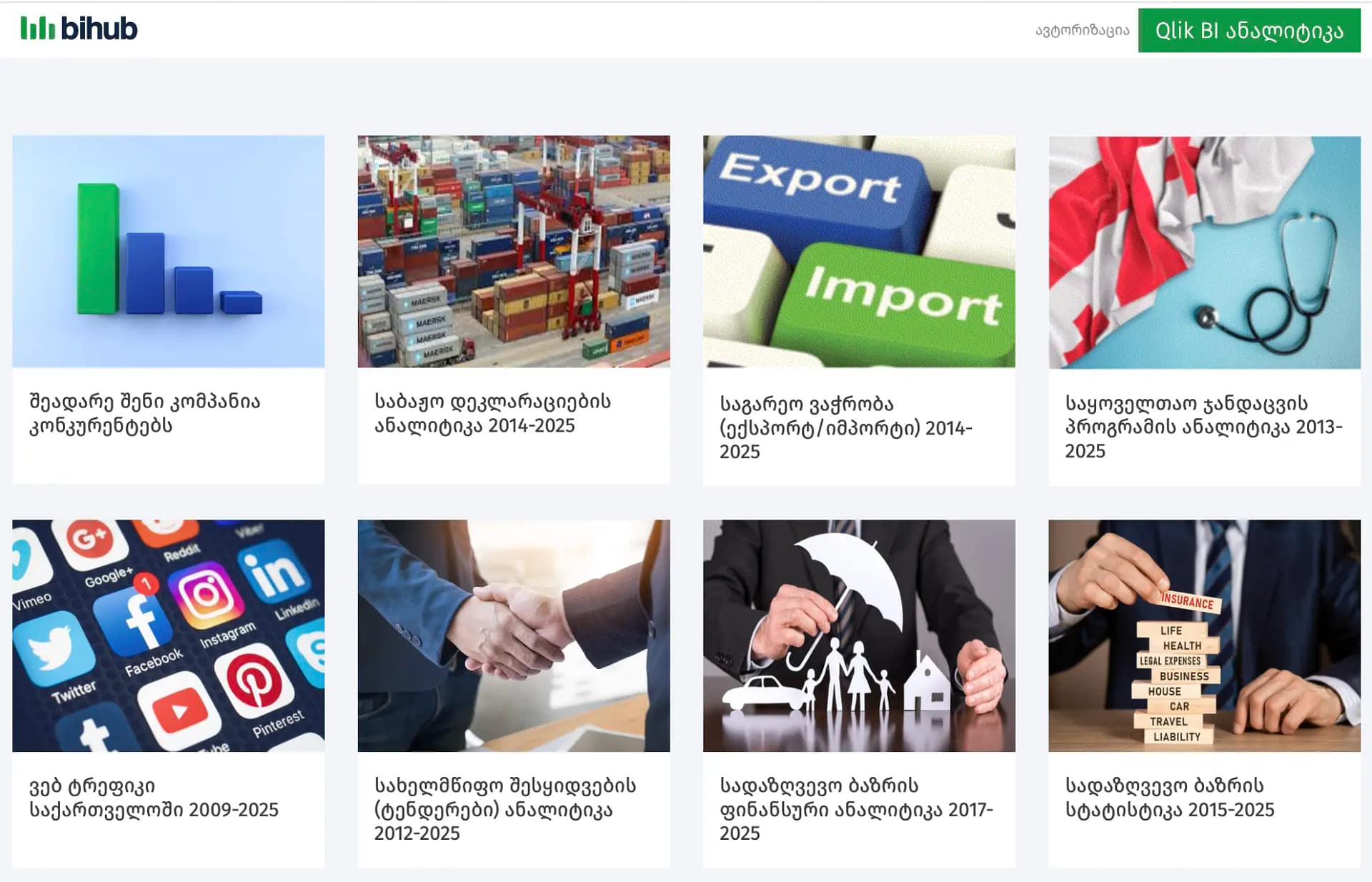 Bihub.ge შექმნილია მსოფლიოს წამყვანი ბიზნეს ანალიტიკური სისტემის Qlik Sense-ის ბაზაზე, რომელიც უზრუნველყოფს მონაცემების გამოყენების სრულიად განსხვავებულ და უნიკალურ გამოცდილებას.
